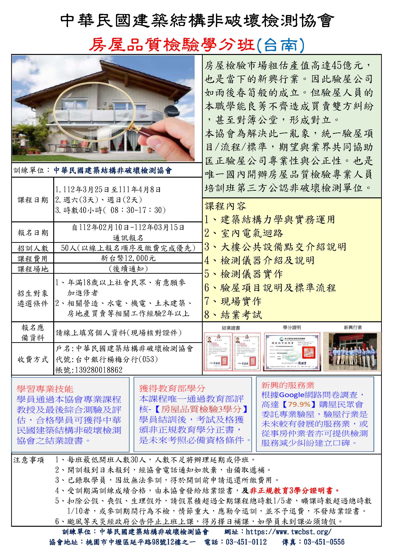 南部的朋友有福囉~特別加開~112年5月房屋品質檢驗專業人員班(屏東營建班)